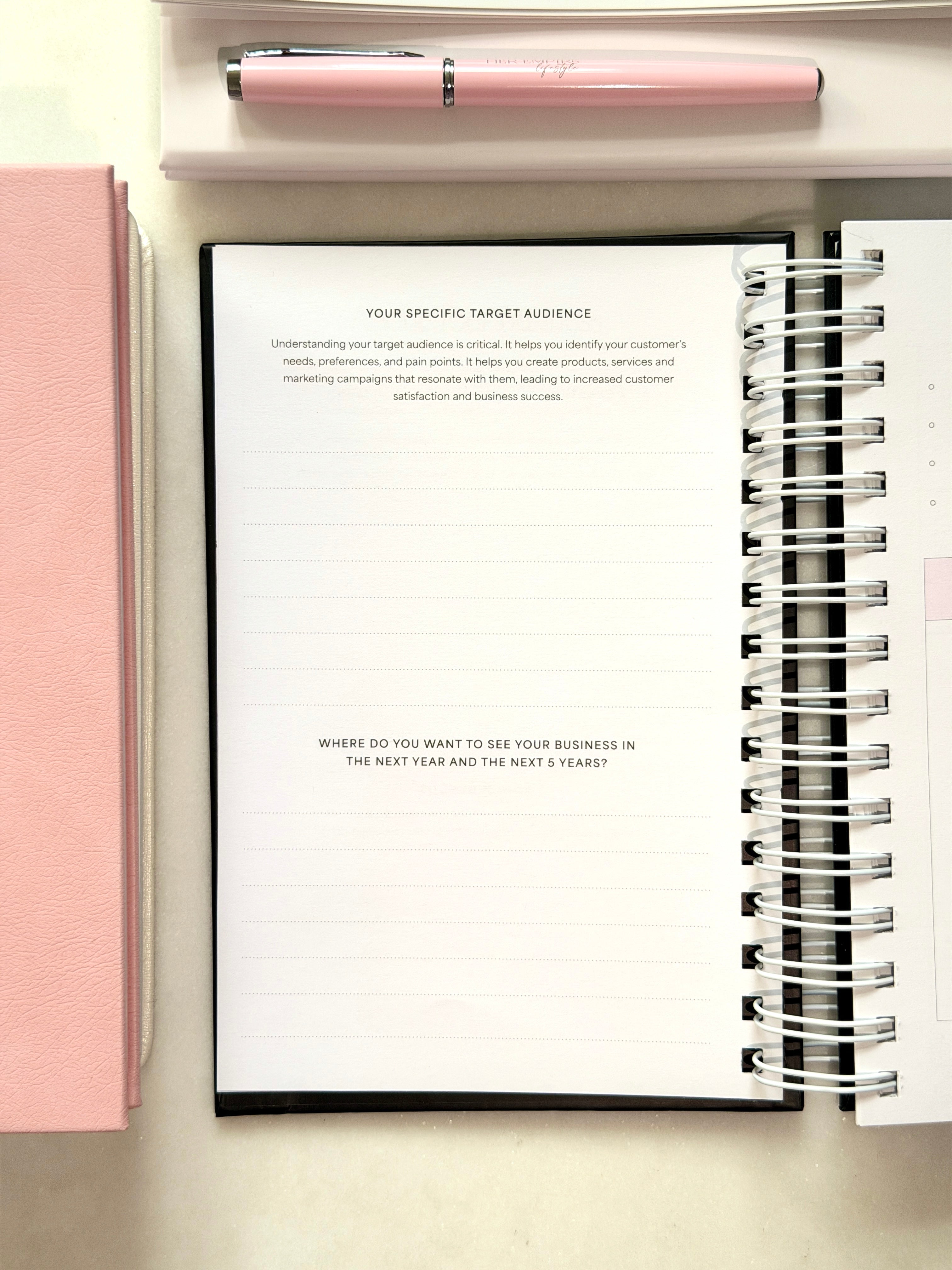 Inside, you’ll find everything you need to plan, grow, and stay consistent — from defining your brand vision and target audience to managing your goals, finances, and daily to-dos.